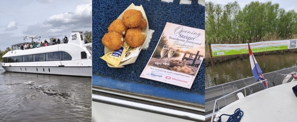 Er worden glaasjes bubbels uitgedeeld aan iedereen en er zijn bitterballen. Iedereen is enthousiast en dat is terecht. Er wordt weer iets moois gedaan voor iedereen en er komen natuurlijk nog veel meer mooie initiatieven voort uit de opbrengsten van het Biesbosch Vaantje.